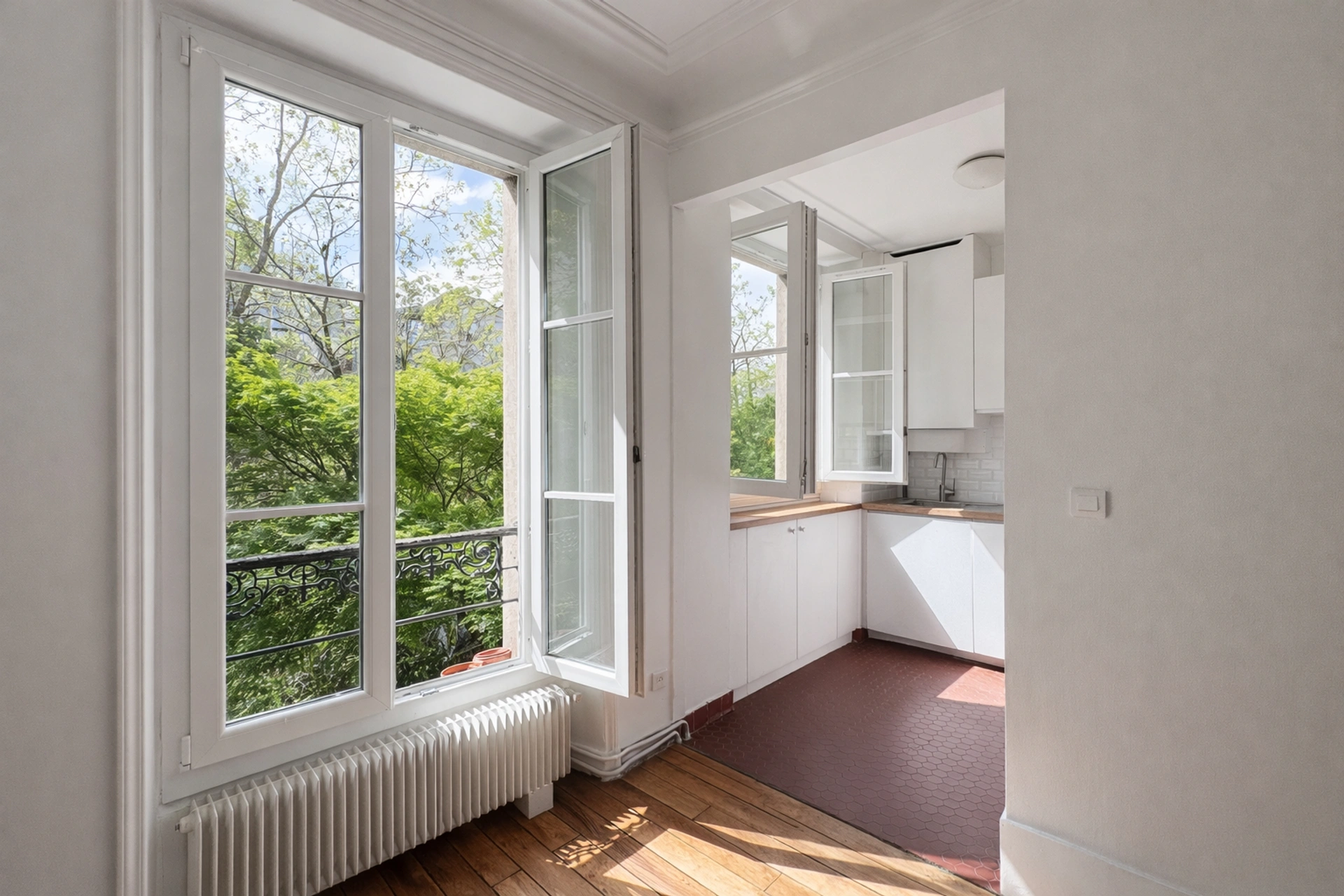 Plan fonctionnel, traversant, appartement calme et confortable.