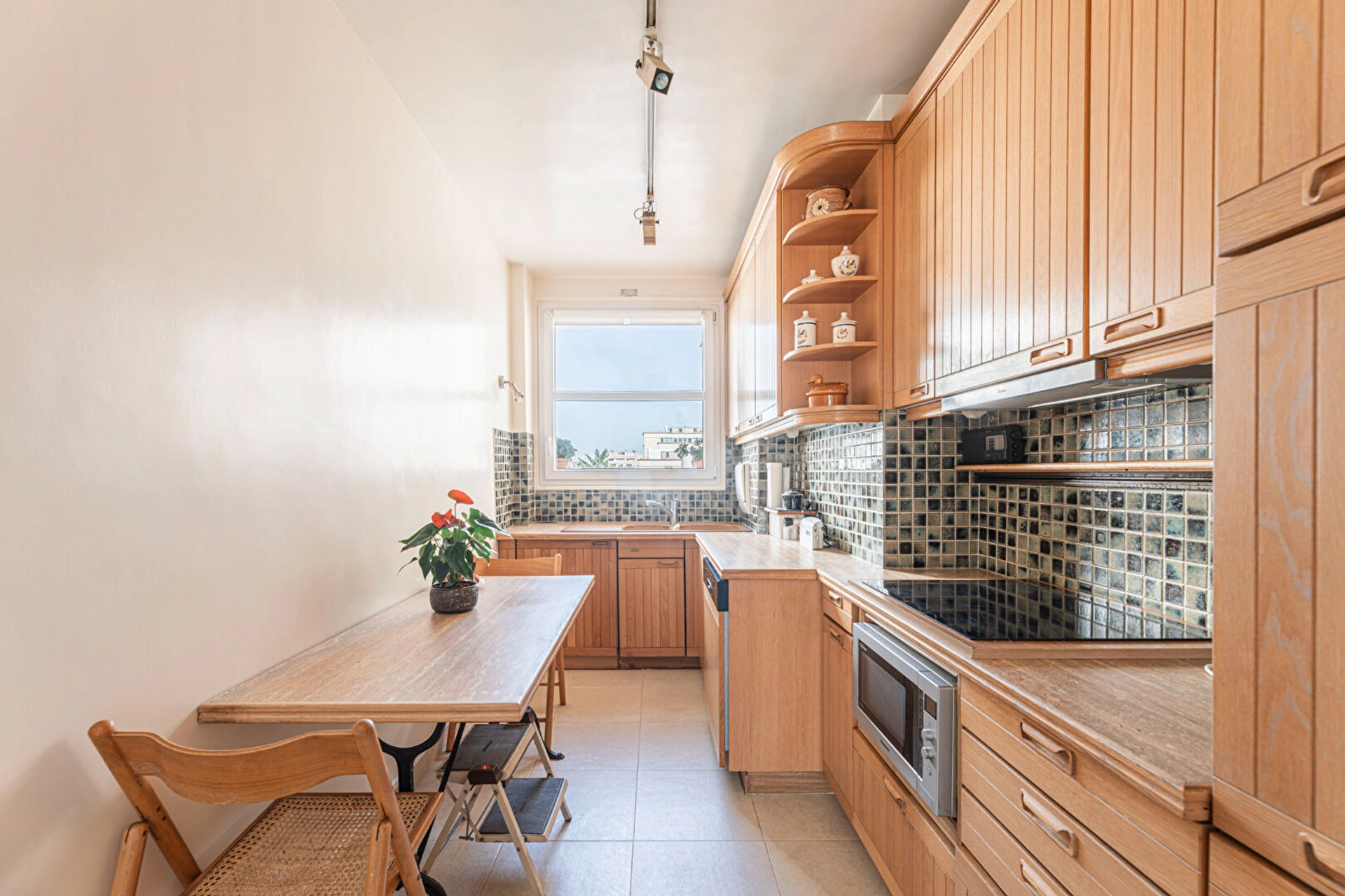 Cet appartement traversant et très lumineux se compose d'une entrée avec rangements, d'un vaste double séjour/salle à manger baigné de lumière, donnant sur un balcon exposé plein sud. Il dispose également d'une grande cuisine indépendante, entièrement équipée et aménagée, de 2 chambres calmes avec dressings, d'une salle de bains ainsi que d'un WC séparés.