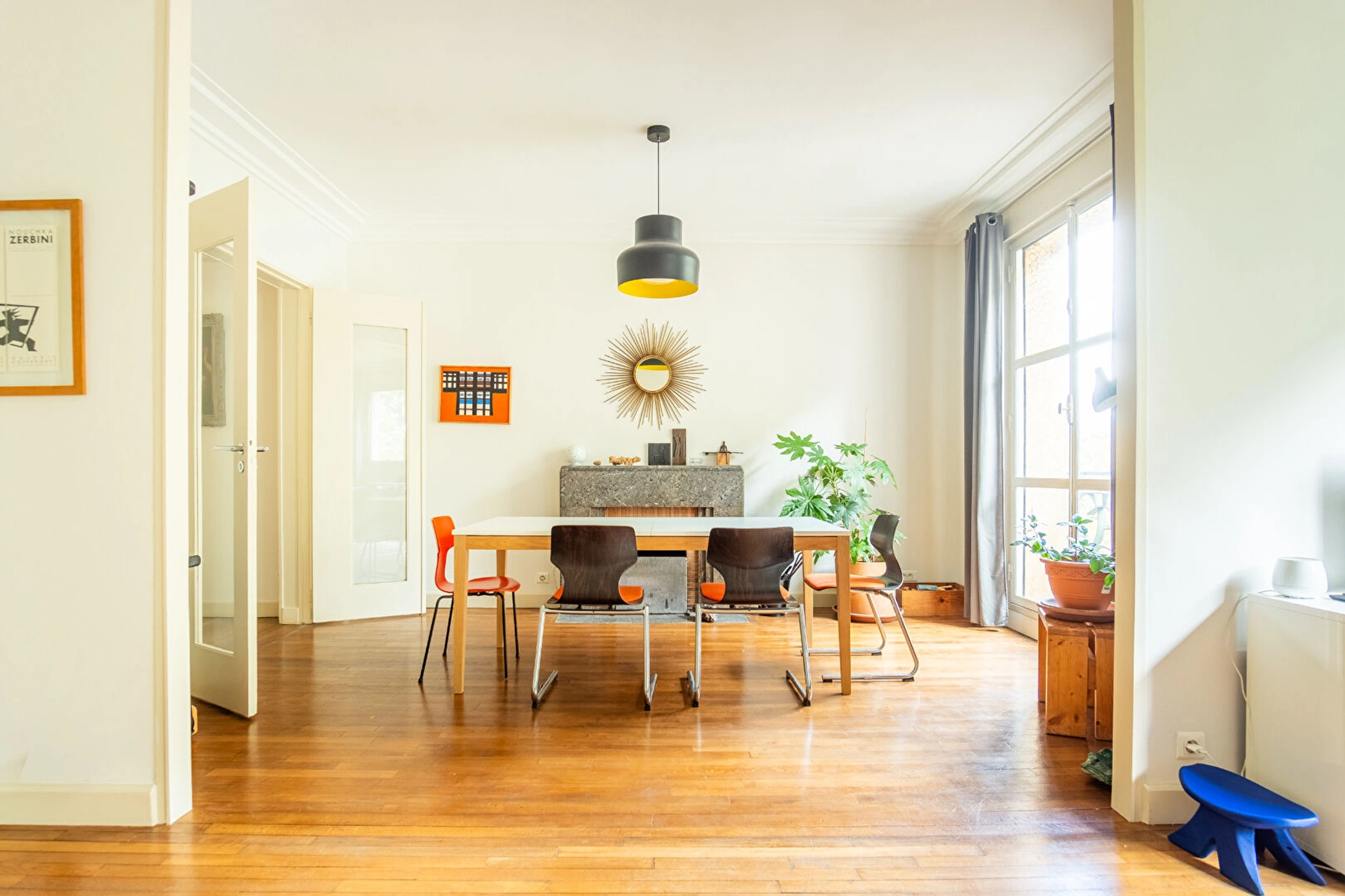 Le charme de l'ancien est pleinement conservé avec parquet, moulures et cheminée fonctionnelle.