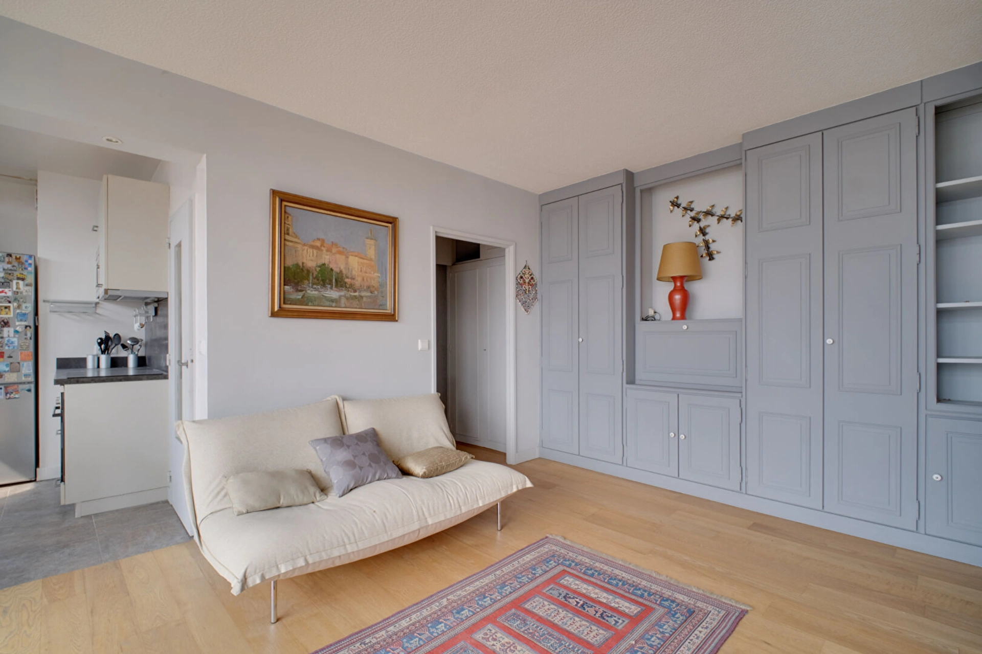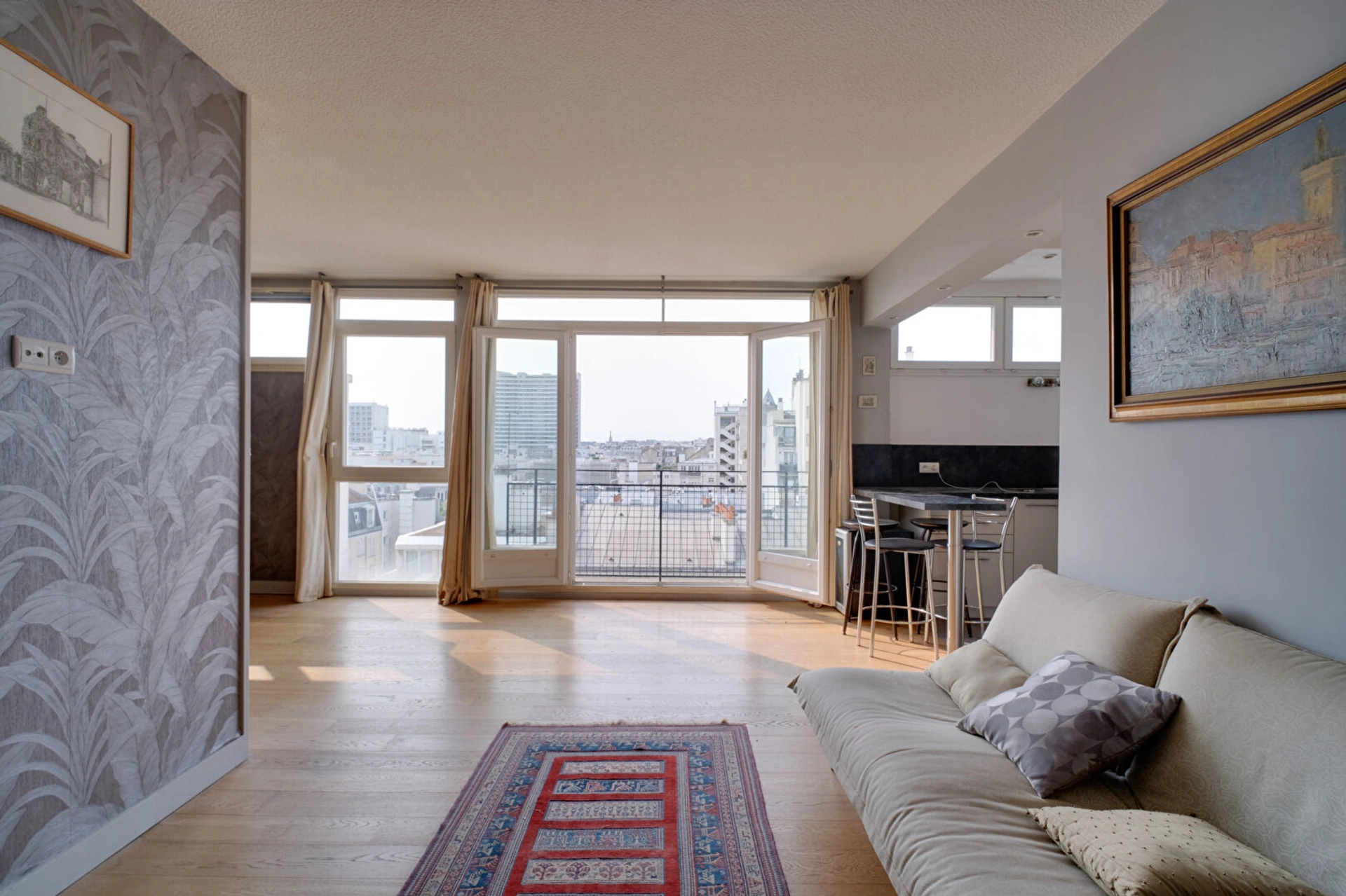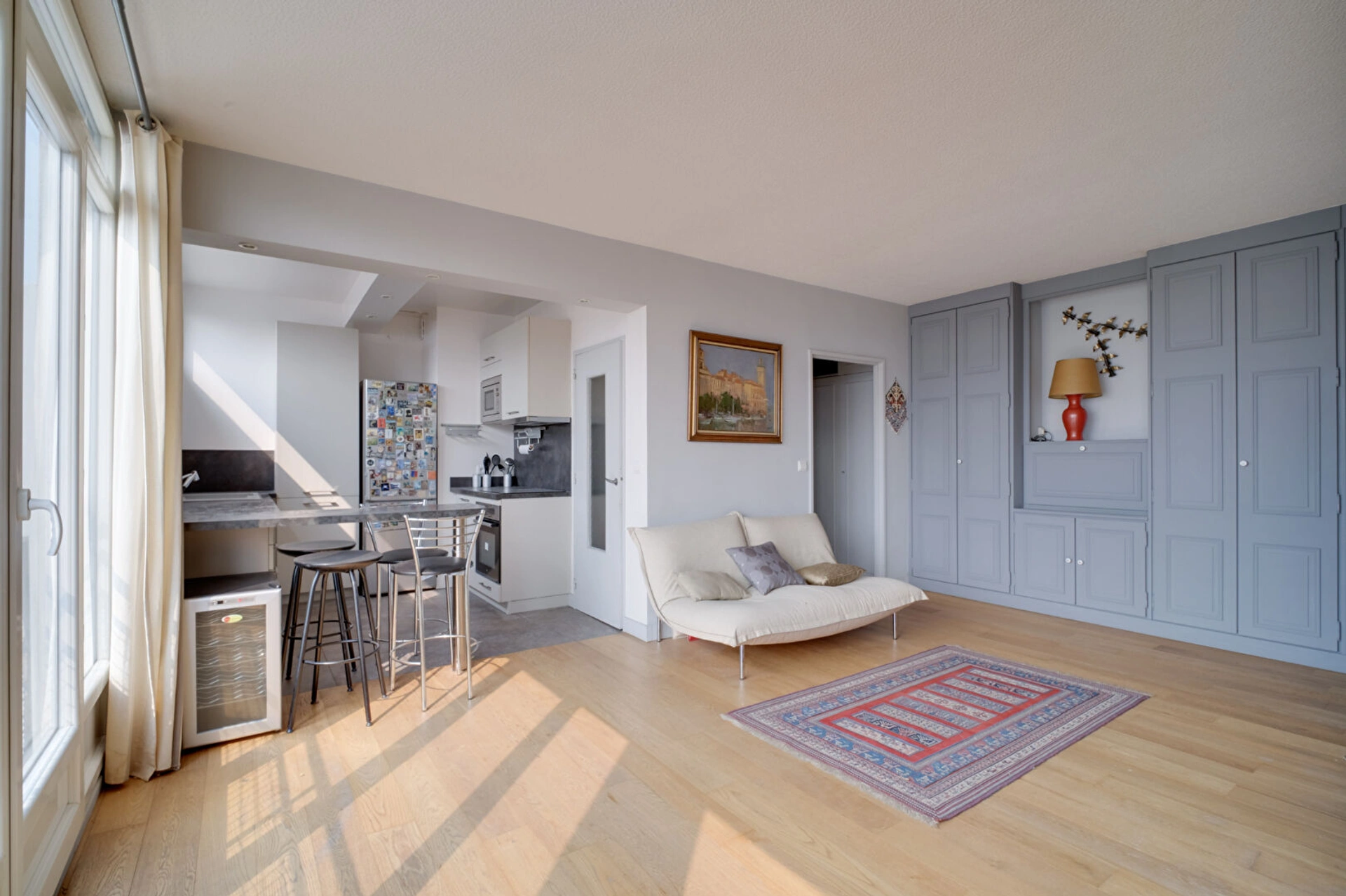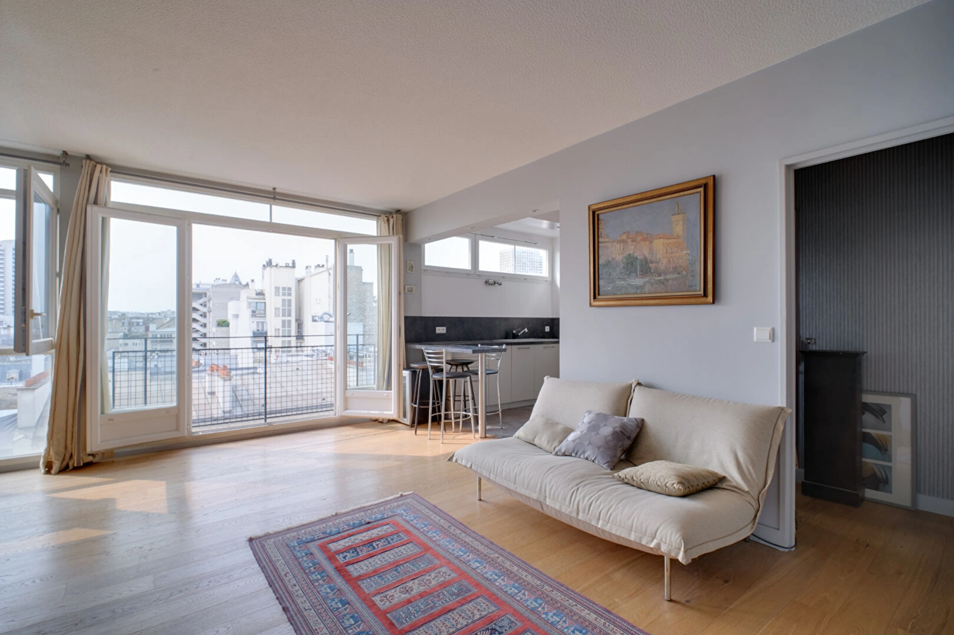Cet appartement bénéfice d'un plan optimal, il se compose de la façon qui suit : une entrée, une cuisine ouverte aménagée et équipée, un vaste double séjour (possibilité 2e chambre) très lumineux avec vue dégagée sur les toits de Paris.
