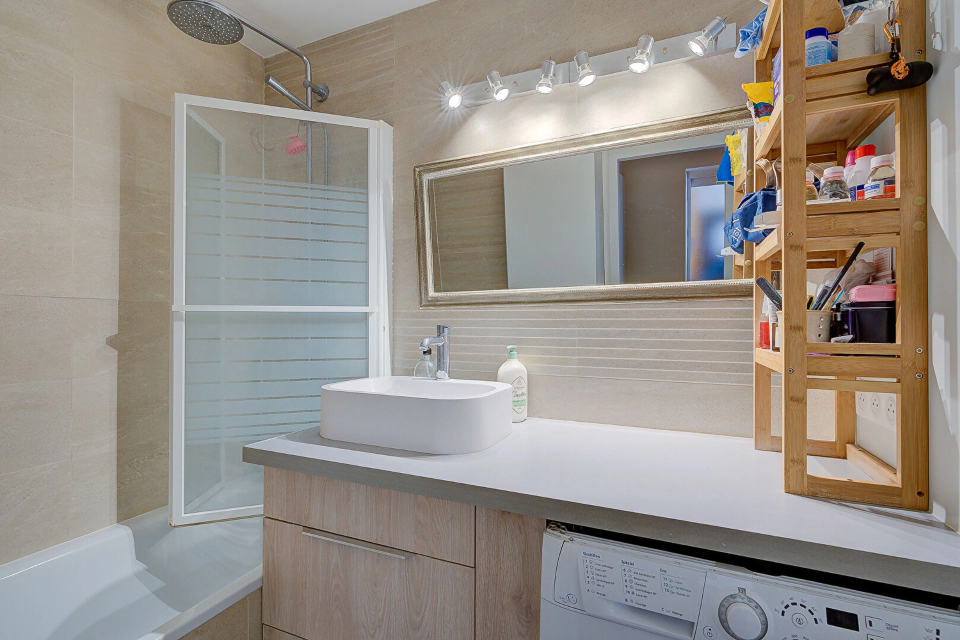 L'appartement se compose d'une entrée, rangements, un bel espace de vie avec cuisine US et un bar, une chambre de bonne taille, des WC séparés et une salle de bain.